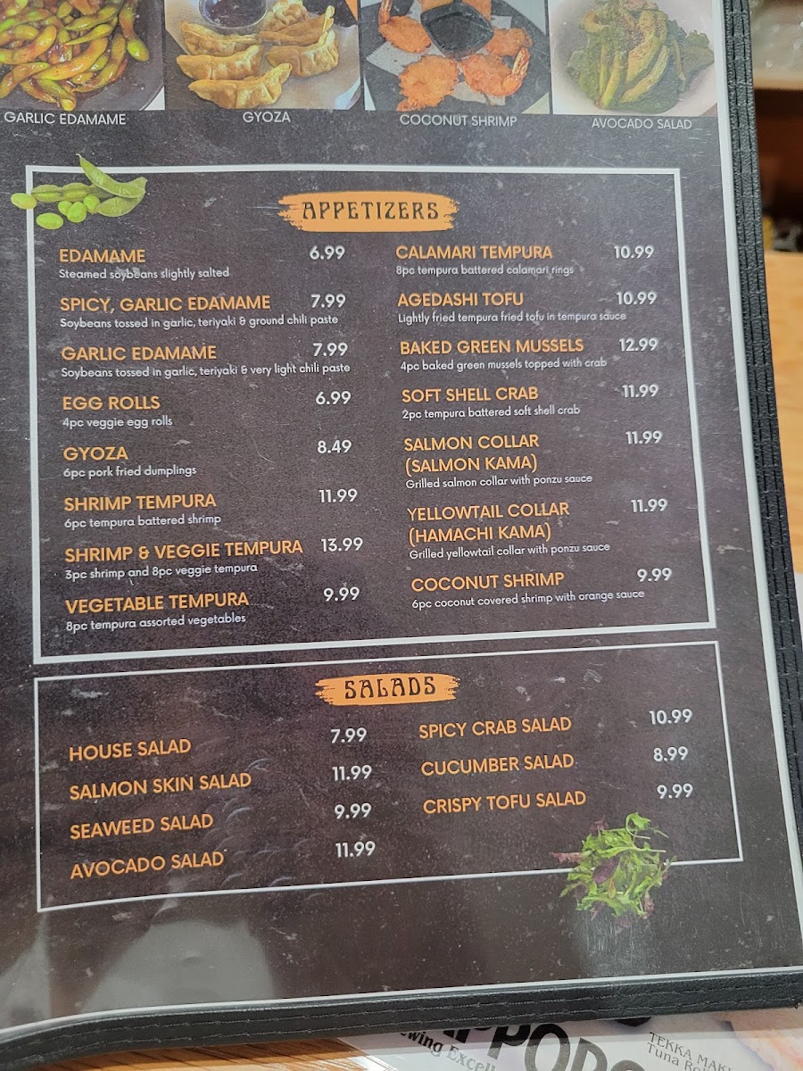 In: salmon, Sp.tuna, cream cheese, carb, avocado, sauce, eel, Sp. Mayo.