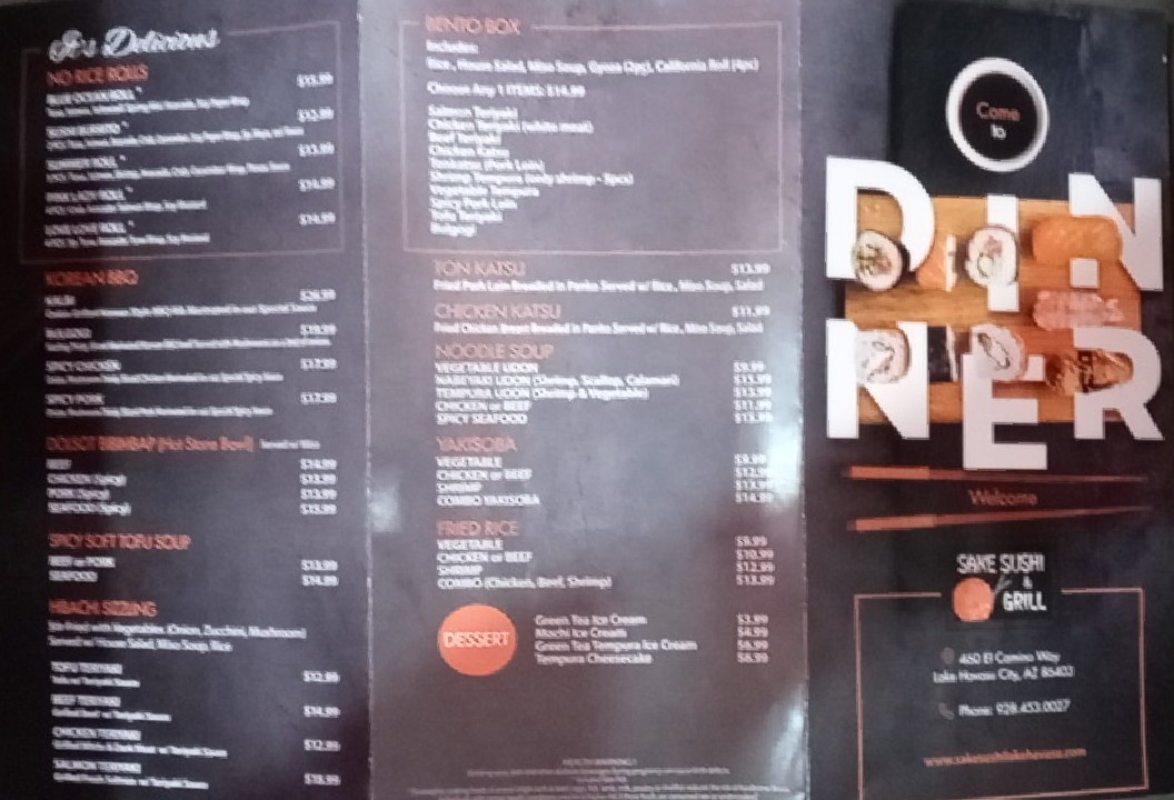 Welcome to Sake Sushi & Grill, a culinary gem in Lake Havasu City, AZ. Located at 460 El Camino Way, this restaurant seamlessly blends Japanese and Korean cuisines to create an extensive menu that delights the senses. Patrons rave about the expertly crafted sushi and generous portions, highlighting the Nigiri and Sashimi as standout favorites. The chef’s skill shines through each dish, particularly in the vibrant flavors of the Beef Bibimbap served in a traditional hot stone bowl.